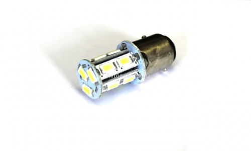 Лампа светодиодная 12v (21/5w) BAY15d (2конт) 13 SMD диодов, белая (габариты, стоп-сигнал)